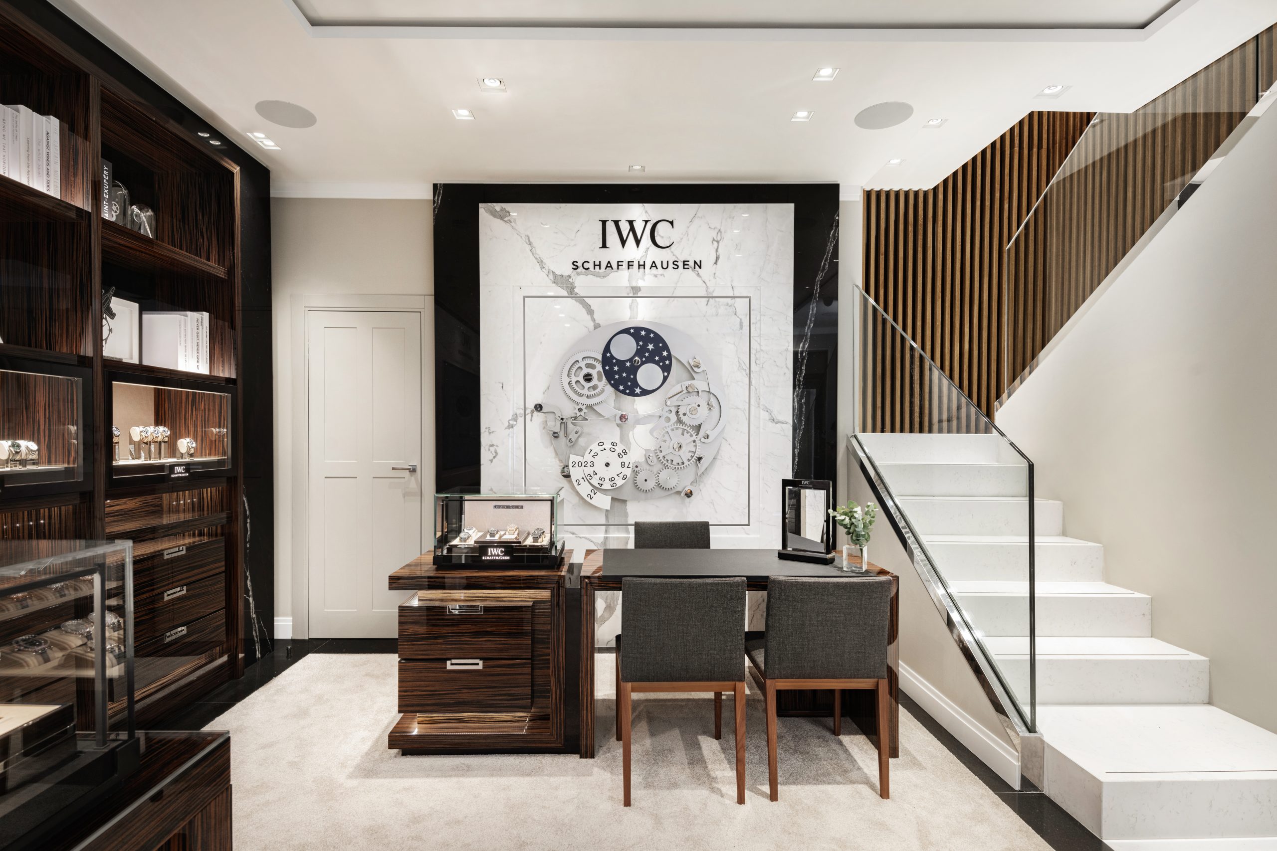 IWC Schaffhausen ha celebrato la lunga relazione con Hausmann & Co.,, risalente agli anni ’70, anni l’orologeria romana diventò il primo importatore di IWC in Italia. La nuova Boutique di Roma è un grande passo nell’evoluzione di questo rapporto di lunga data e rappresenta il quarto capitolo come Boutique Monomarca del gruppo. L’ambiente elegante, caratterizzato dall’uso di legno scuro, marmo bianco statuario e finiture sofisticate, crea un’accogliente atmosfera per esporre gli orologi di prestigio di Schaffhausen.