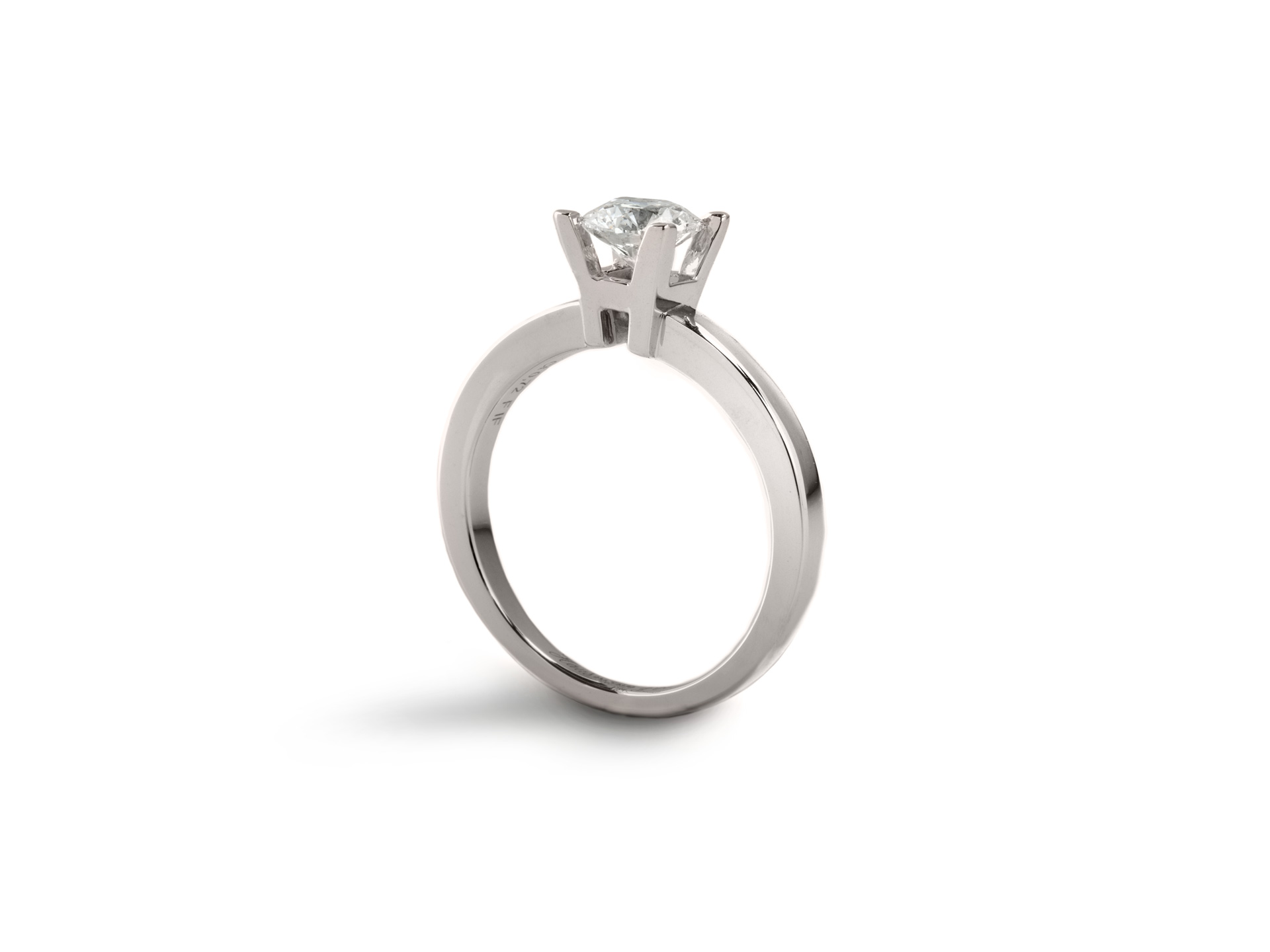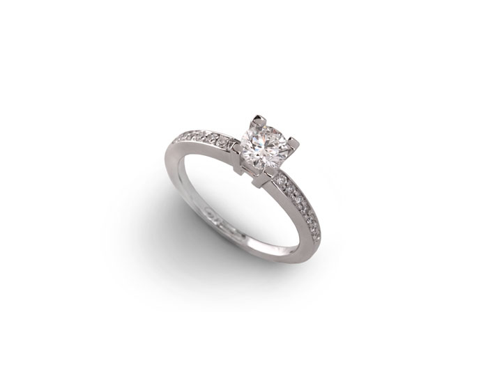 "Élevé" model. Diamond solitaire ring in white gold and diamond full pavé.Available in different combinations of carat, colour, clarity and cut.
