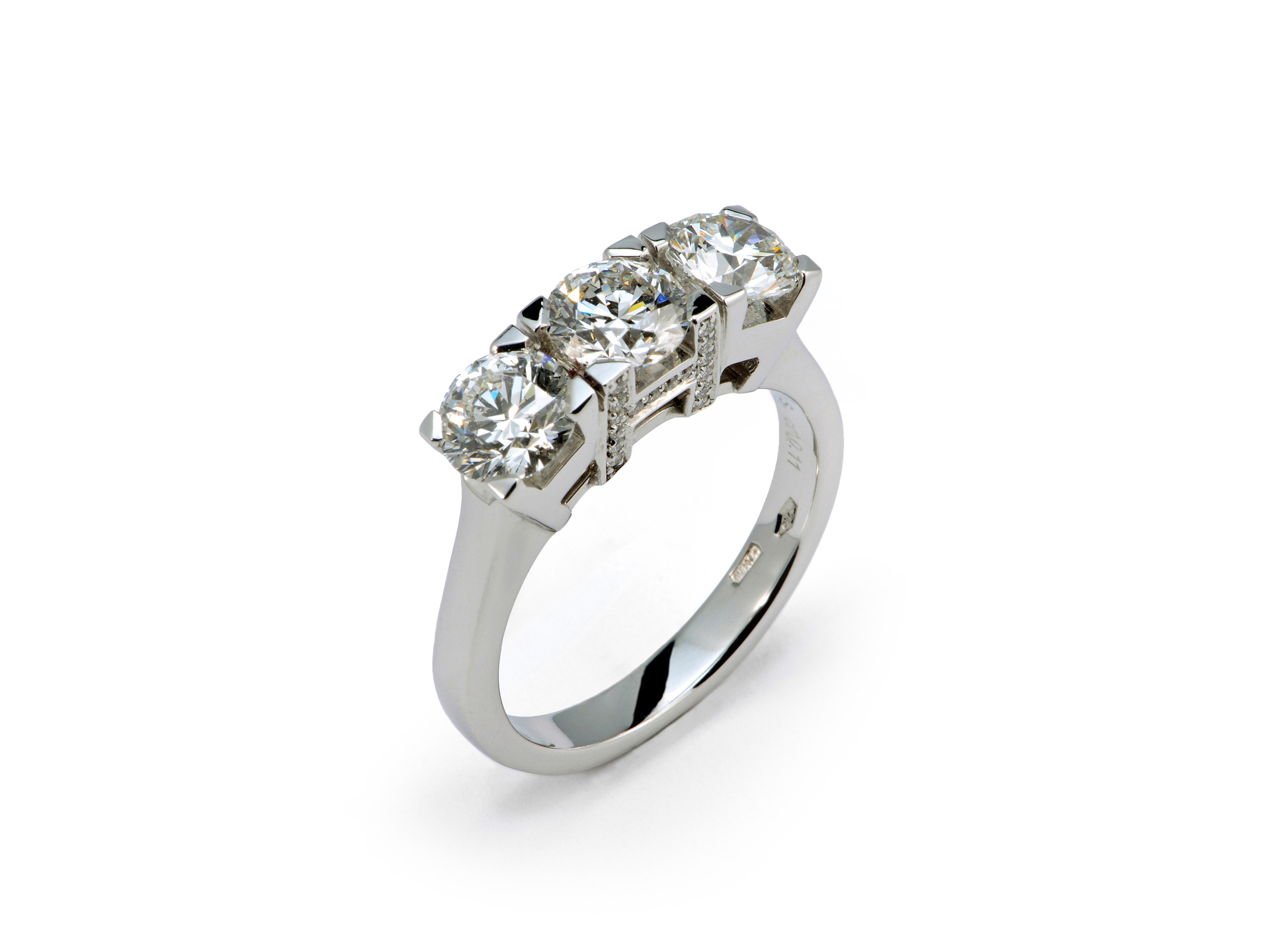 Hausmann & Co.  Bridal Collection. Three stone diamond ring in white gold. Available in different combinations of carat, colour, clarity and cut.
