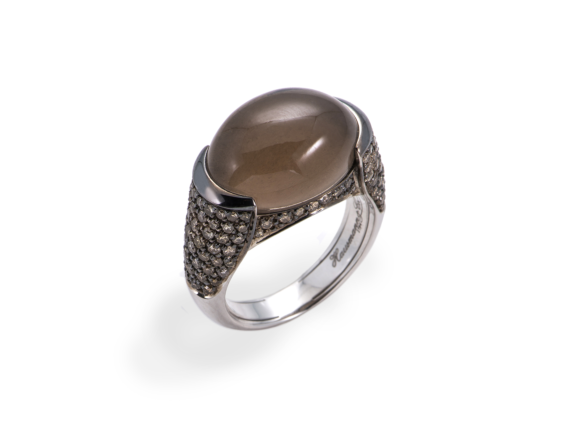 Ring in rose gold with central smoky quartz cabochon ( ct. 8.85 ) and brown diamond ( ct. 1.08 ) from Hausmann & Co. Cinque Terre Collection. Hand made in Italy.