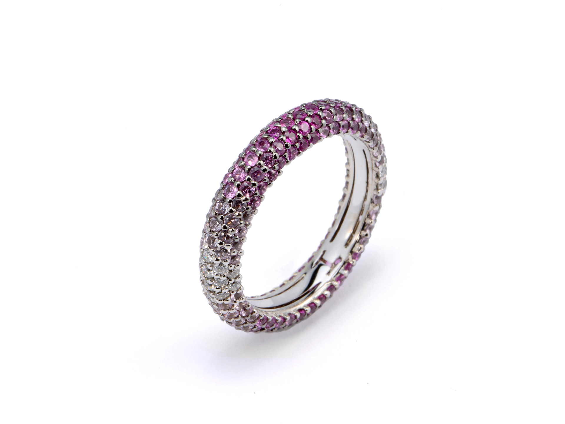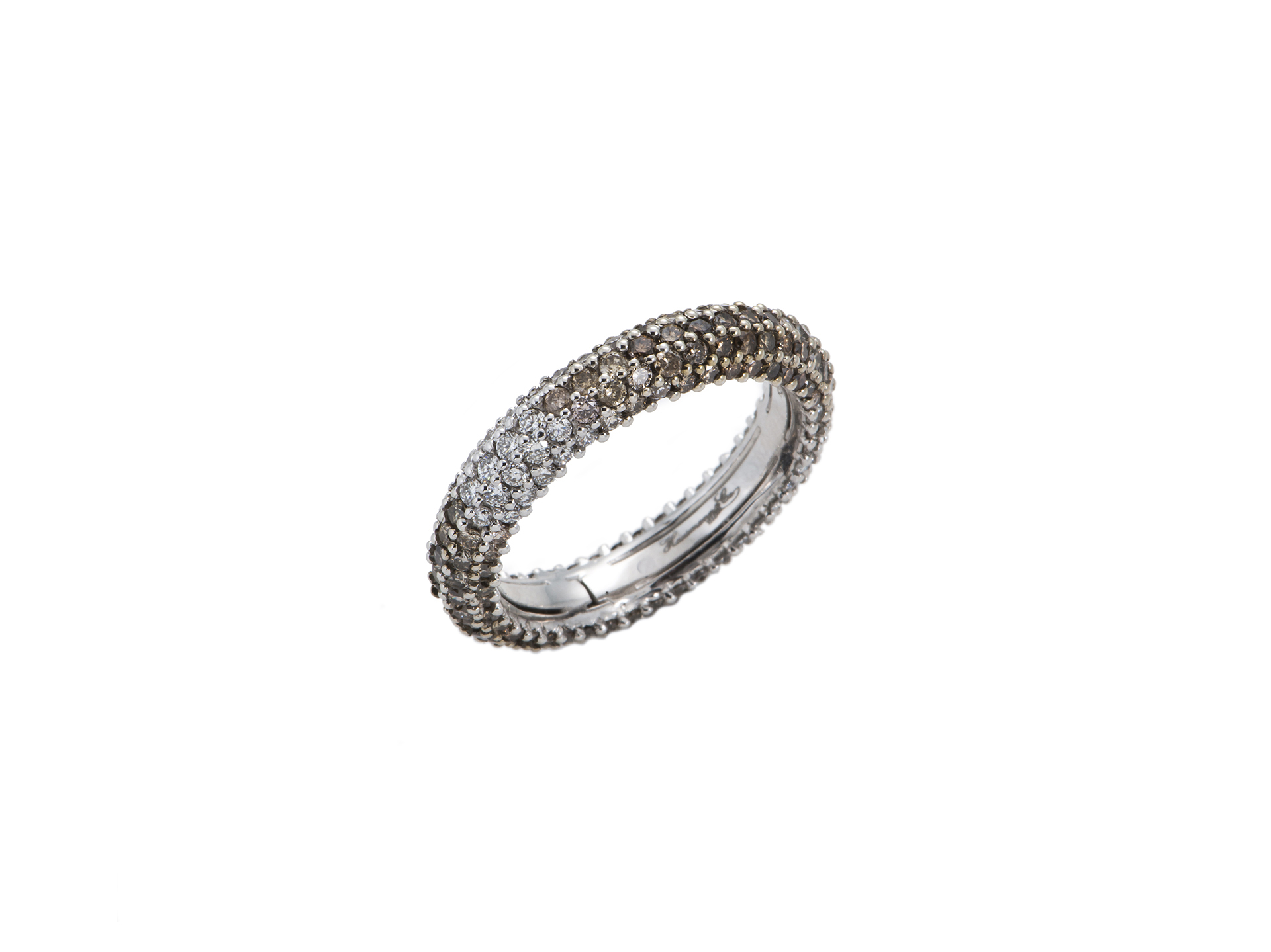 White gold band ring with white (ct. 0,58) and brown (ct.1,89) diamonds in gradueded shading setting.