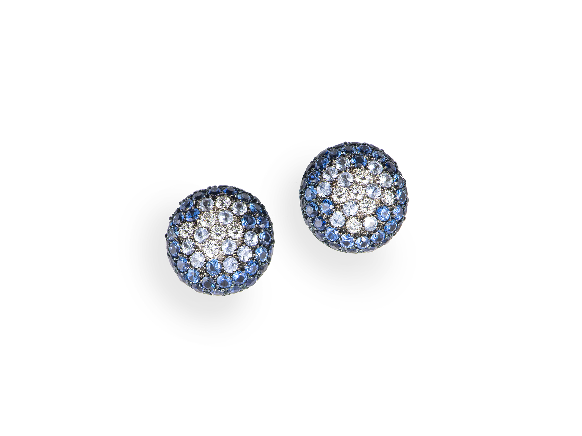Round earrings with diamonds and blue sapphires