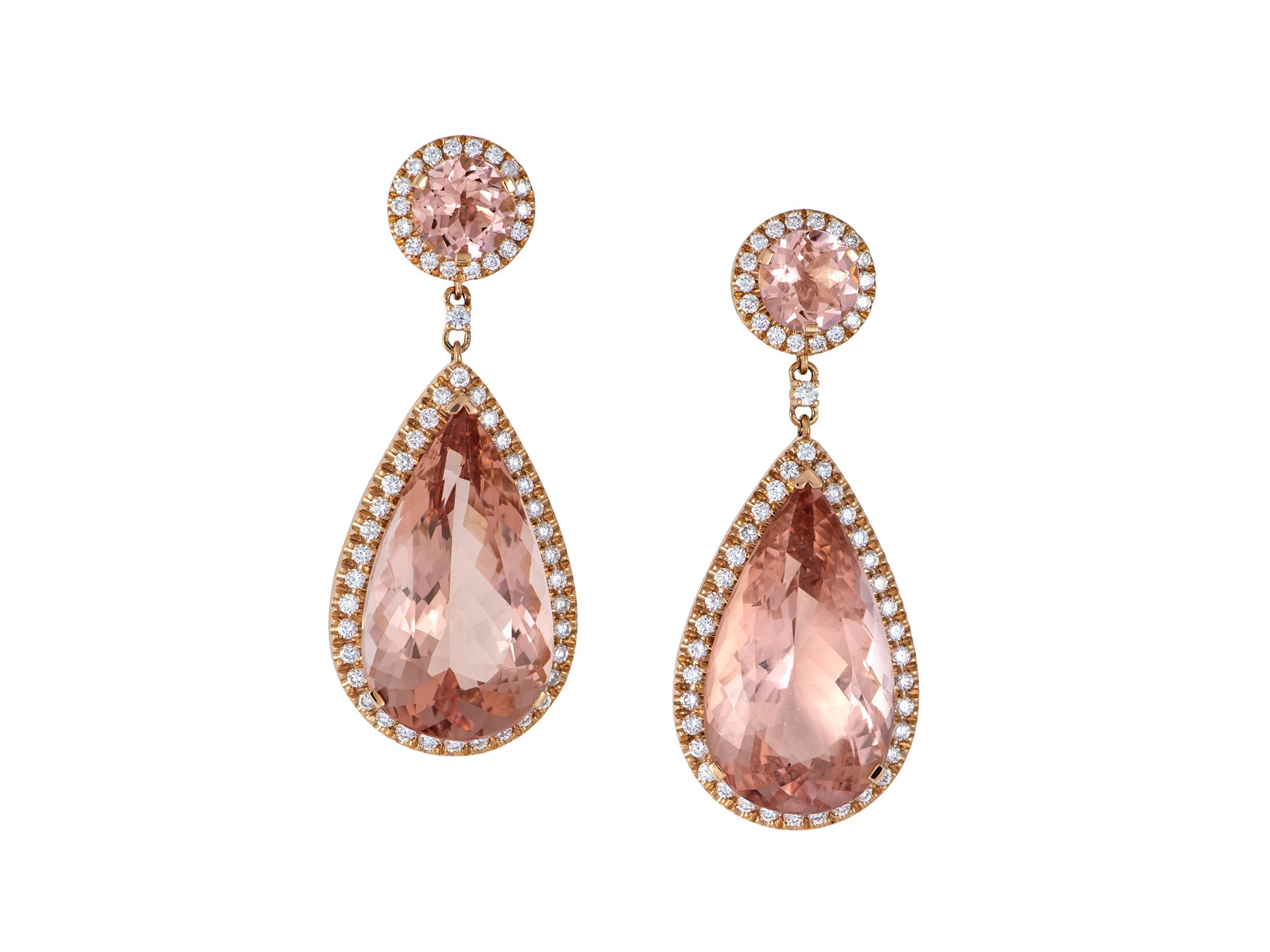 Double morganite stone earrings with diamonds