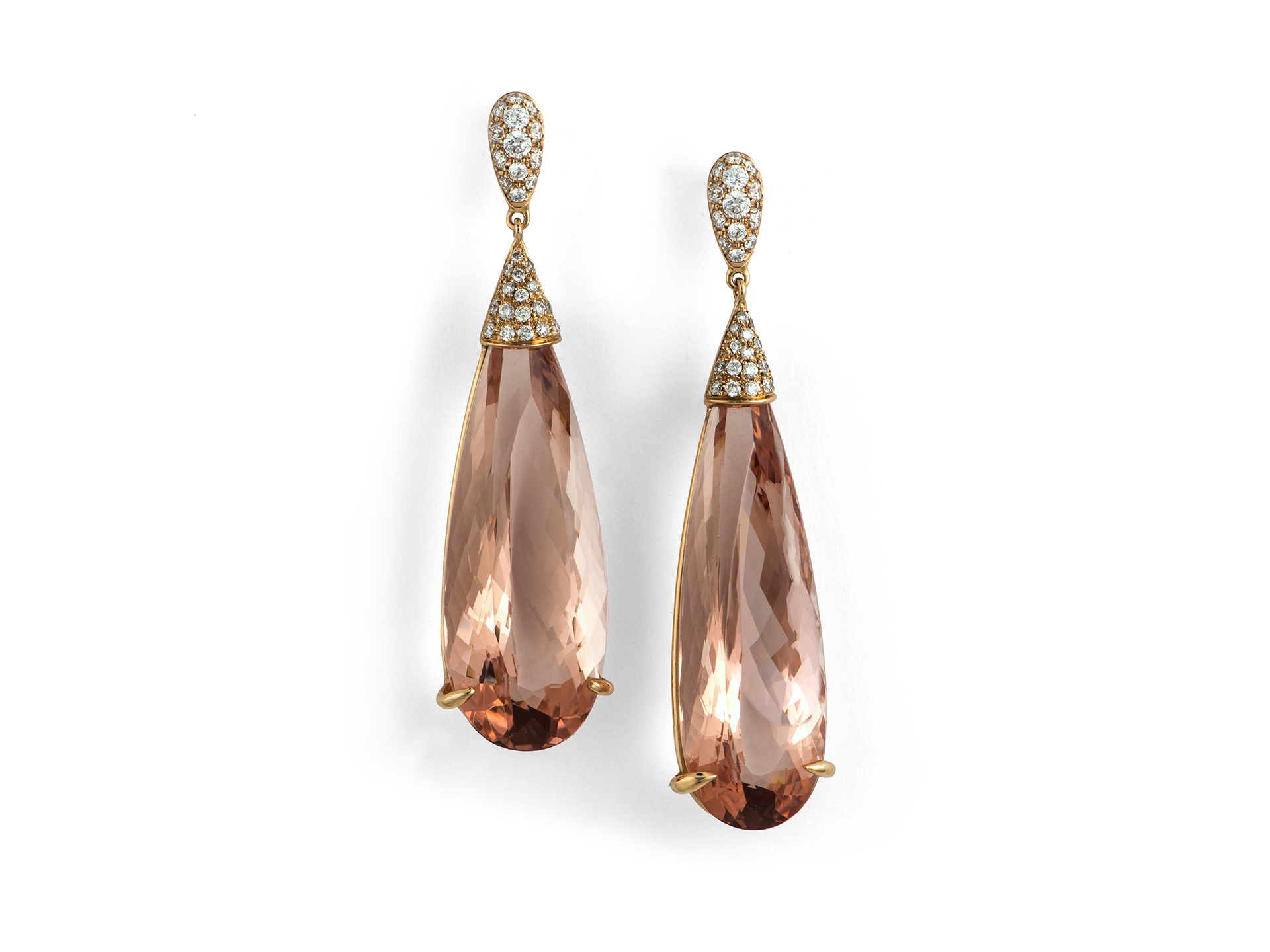 Morganite drops earrings with diamonds