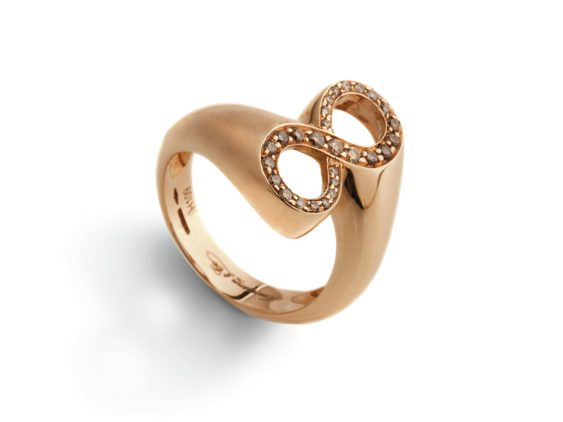 Rose gold and brown diamonds infinite ring inner diameter 1,7 cm