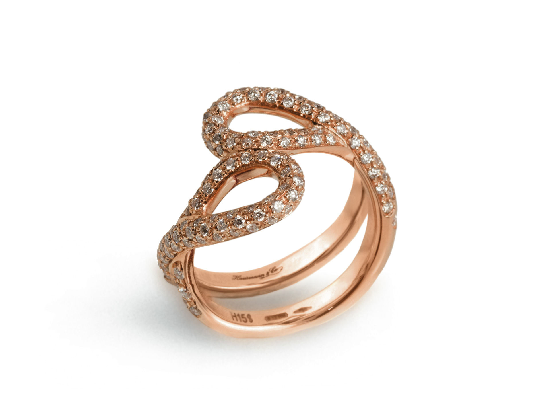 Rose gold and white diamonds double infinite ring inner diameter 1,7 cm