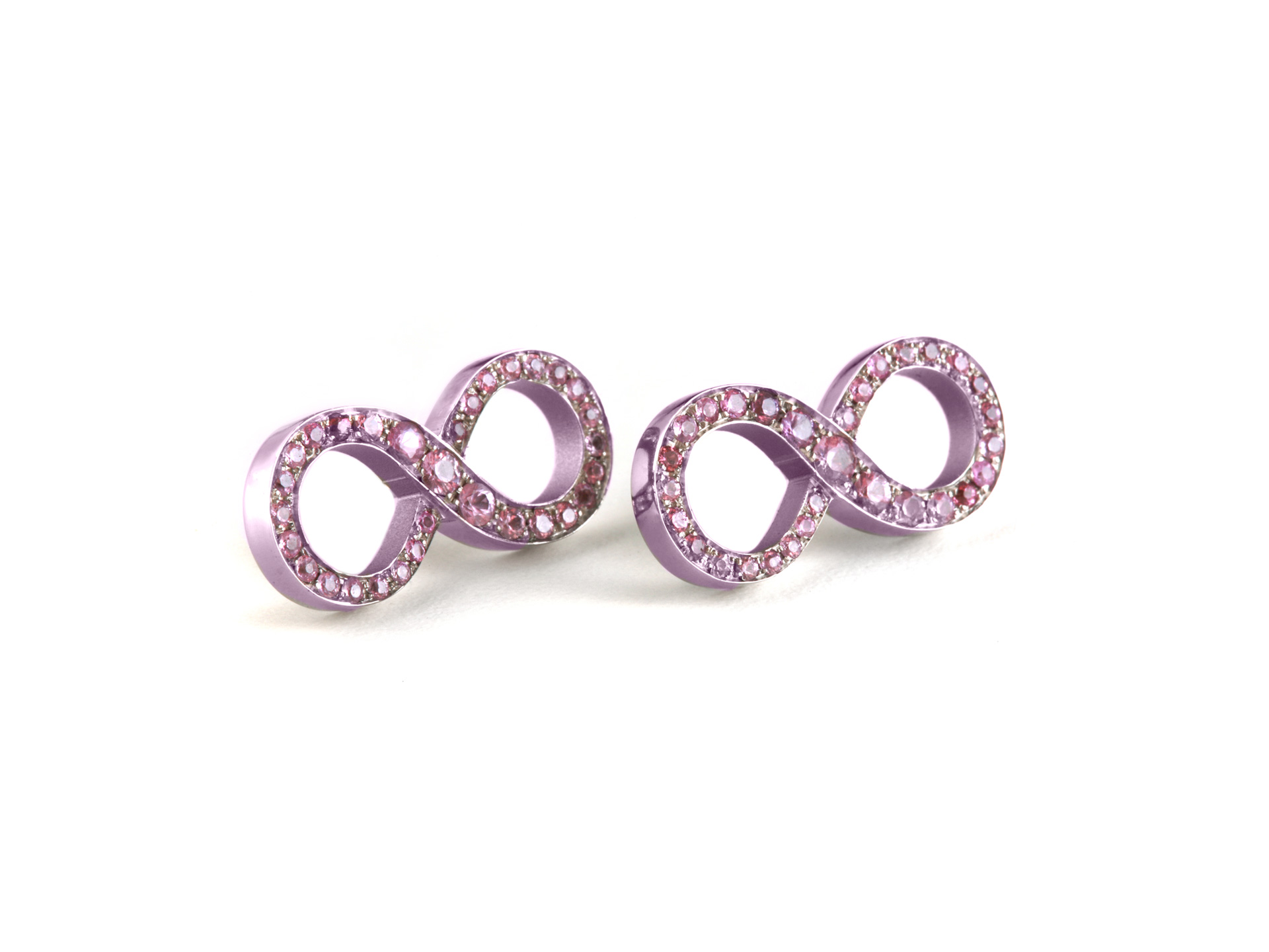 Rose titanium with rose sapphires infinite earrings 2 cm