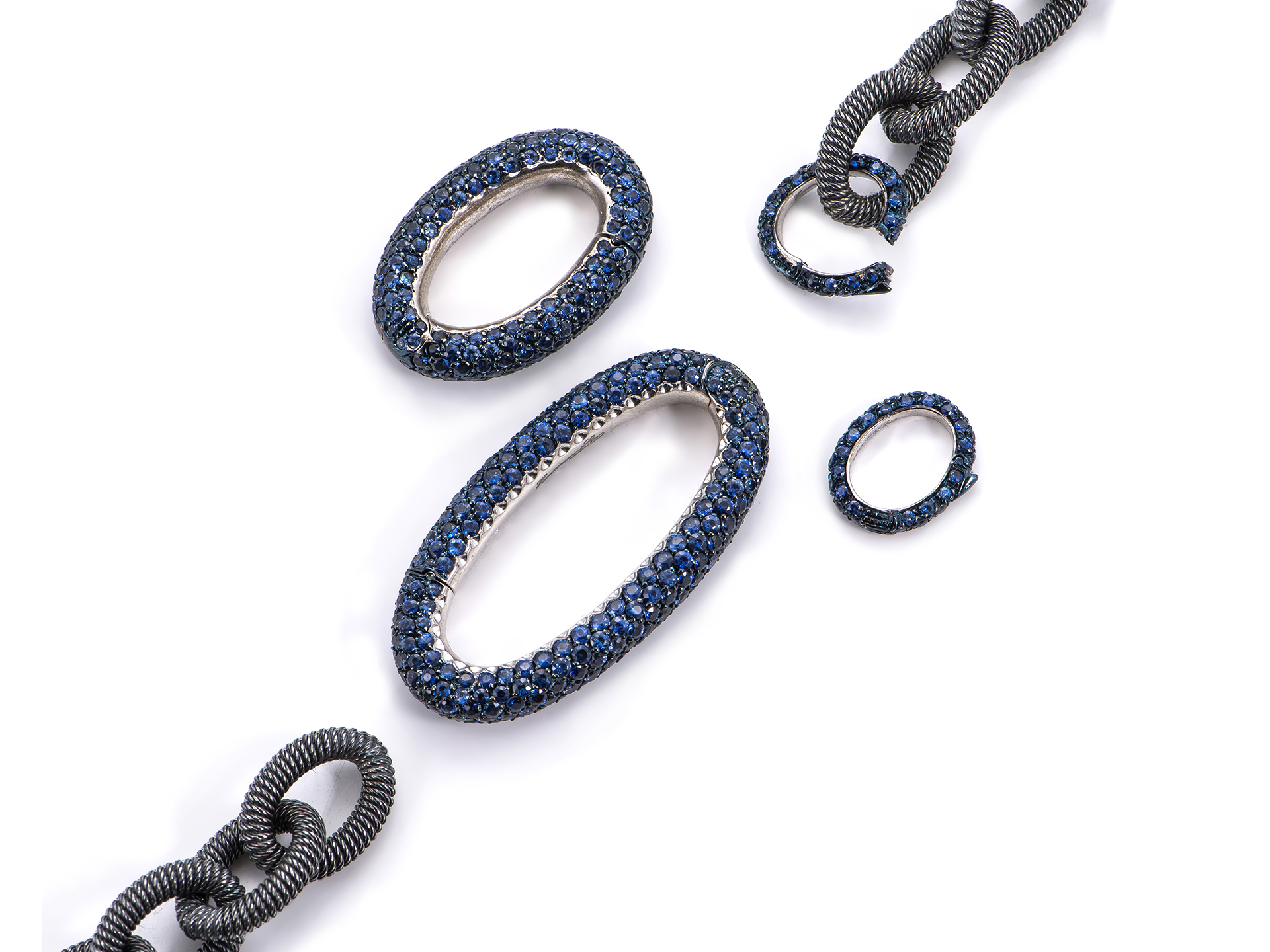 Gold "Ouverture" necklace closures with blue sapphires