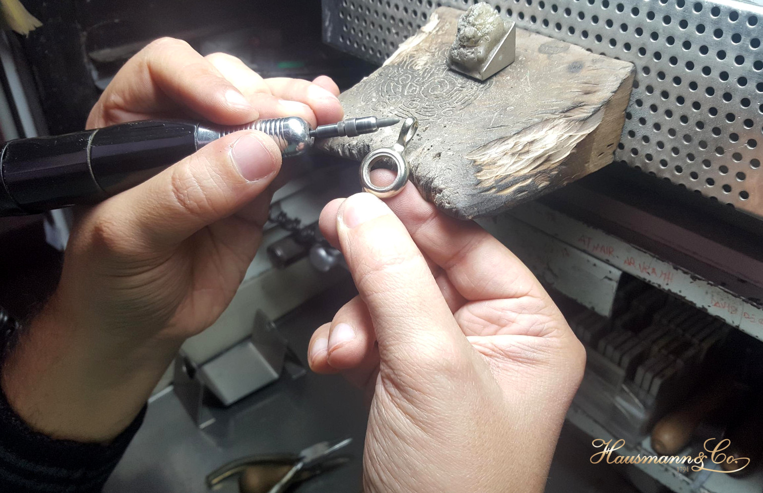 On a wood desk, among dust and tools, the light of the gold comes out, ready to embrace the colours of the stones.