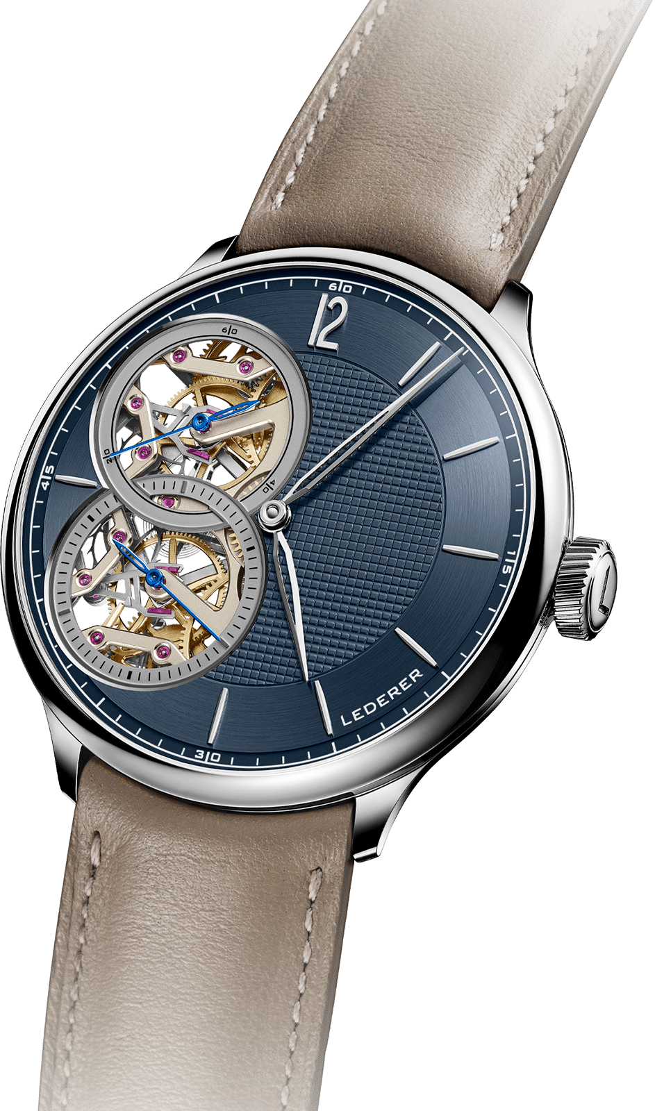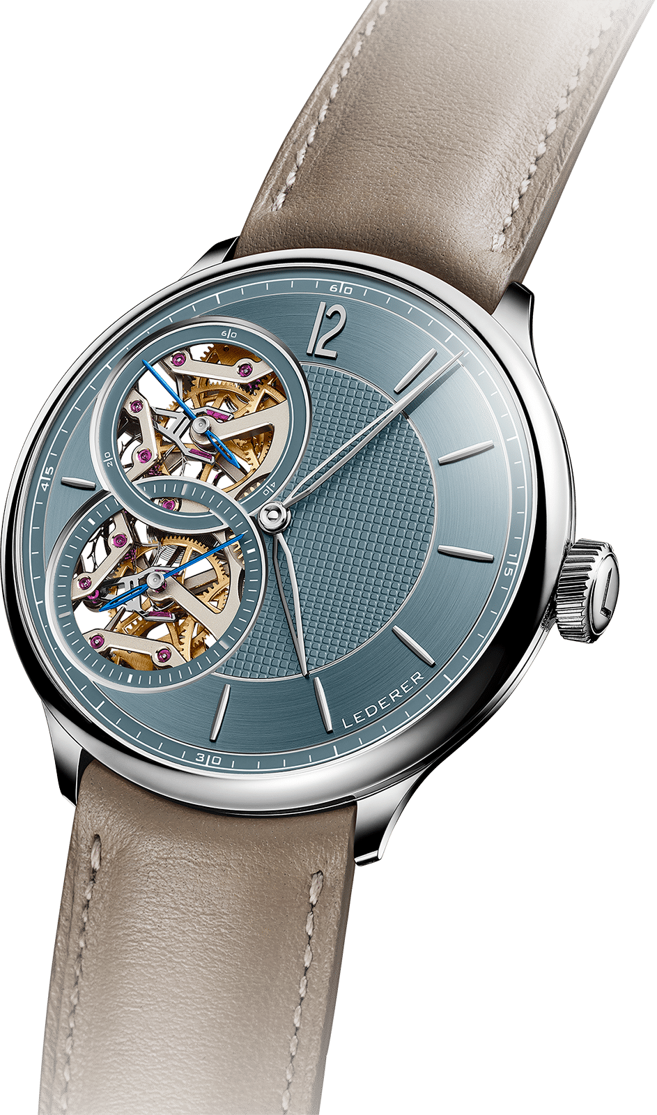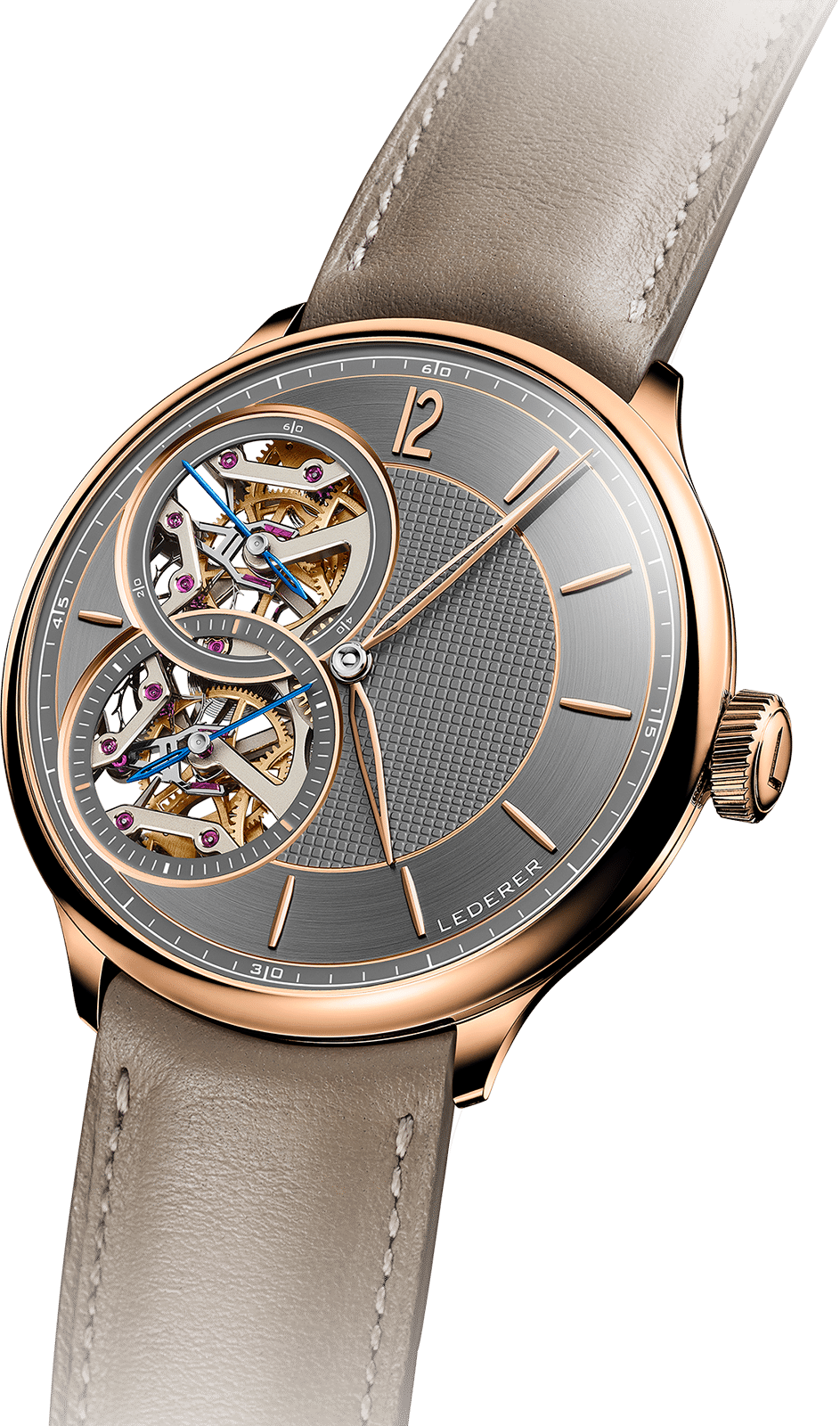 For the first time in the history of watchmaking, Bernhard Lederer has created a movement that integrates an independent double-wheel escapement – dual barrels, dual gear trains, dual escape wheels – with dual remontoirs. This unique wristwatch movement is a tribute to George Daniels and his masterpieces, the Space Traveller I and Space Traveller II pocket watches with their independent double-wheel escapements, created over forty years ago.