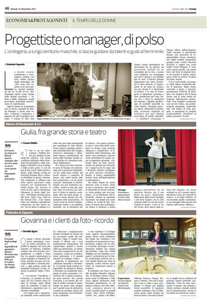A special piece by the Corriere della Sera about women in the watchmaking distribution industry, inside the Special issue about watches in november 2017. Inside, Giulia Mauro’s interview, representing Hausmann & Co.