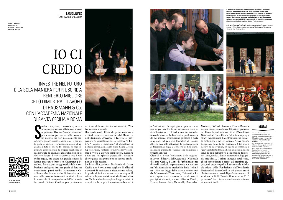 arte, musica, danza, matematica, ingegneria,medicina… Il primo impegno in tal senso, che si concretizzarà a partire dal prossimo giugno, sarà proprio quello di sostenere le attività didattiche della Fondazione dell’Accademia Nazionale di Santa Cecilia e dei giovani artisti che frequentano i corsi di perfezionamento di studi musicali. Il “Premio Hausmann & Co.” permetterà loro di entrare nel mondo artistico ai massimi livelli.