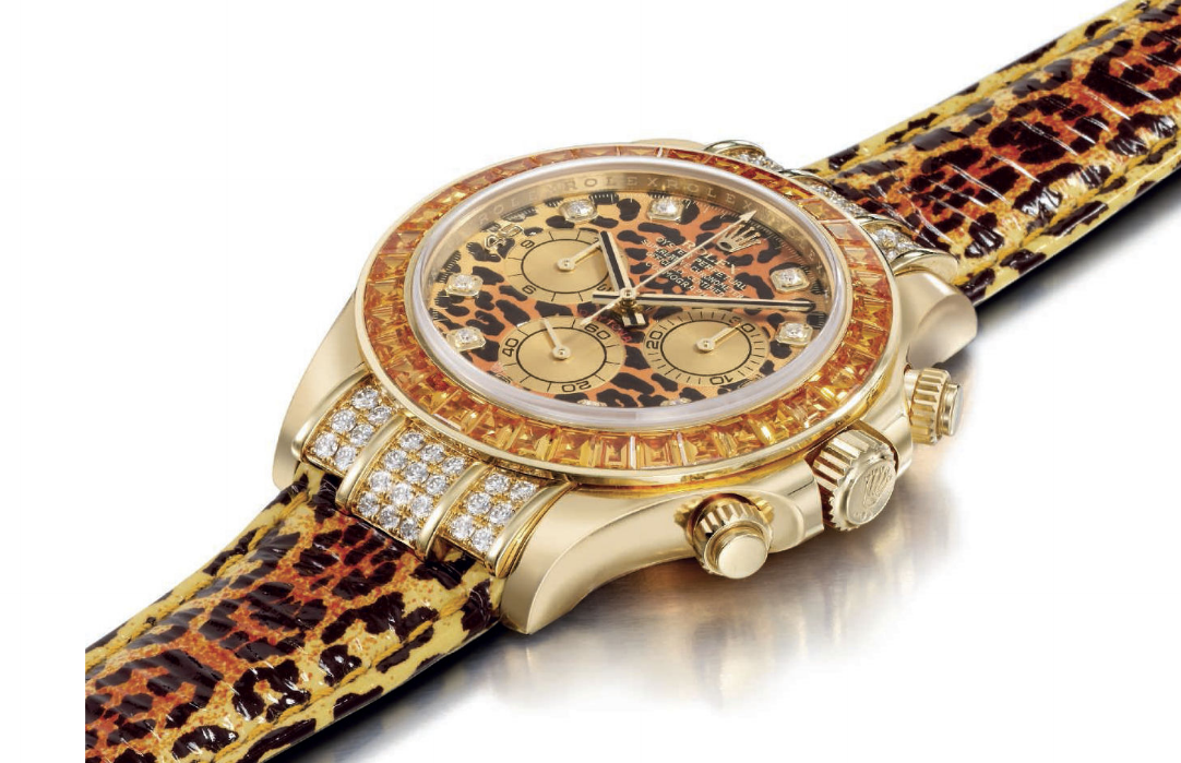Fra le sperimentazioni estetiche su questo agognato modello, la lunetta si conferma per Rolex l’ elemento sul quale giocare per sviluppare nuove proposte. Preziosa nel Daytona Rainbow, con una sfumatura di zaffiri multicolor a ricreare i colori dell’arcobaleno.In ceramica sulla referenza 116515, apprezzata per il contrasto armonico di colori fra l’oro rosa Everose della cassa, il nero della lunetta in Cerachrom, sulla quale è impressa la scala tachimetrica in oro rosa, ed i caldi colori del quadrante, avorio o chocolat.