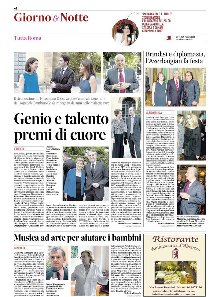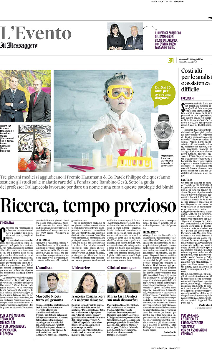 La stampa celebra, insieme ad Hausmann & Co. Patek Philippe, i giovani ricercatori del Bambino Gesù